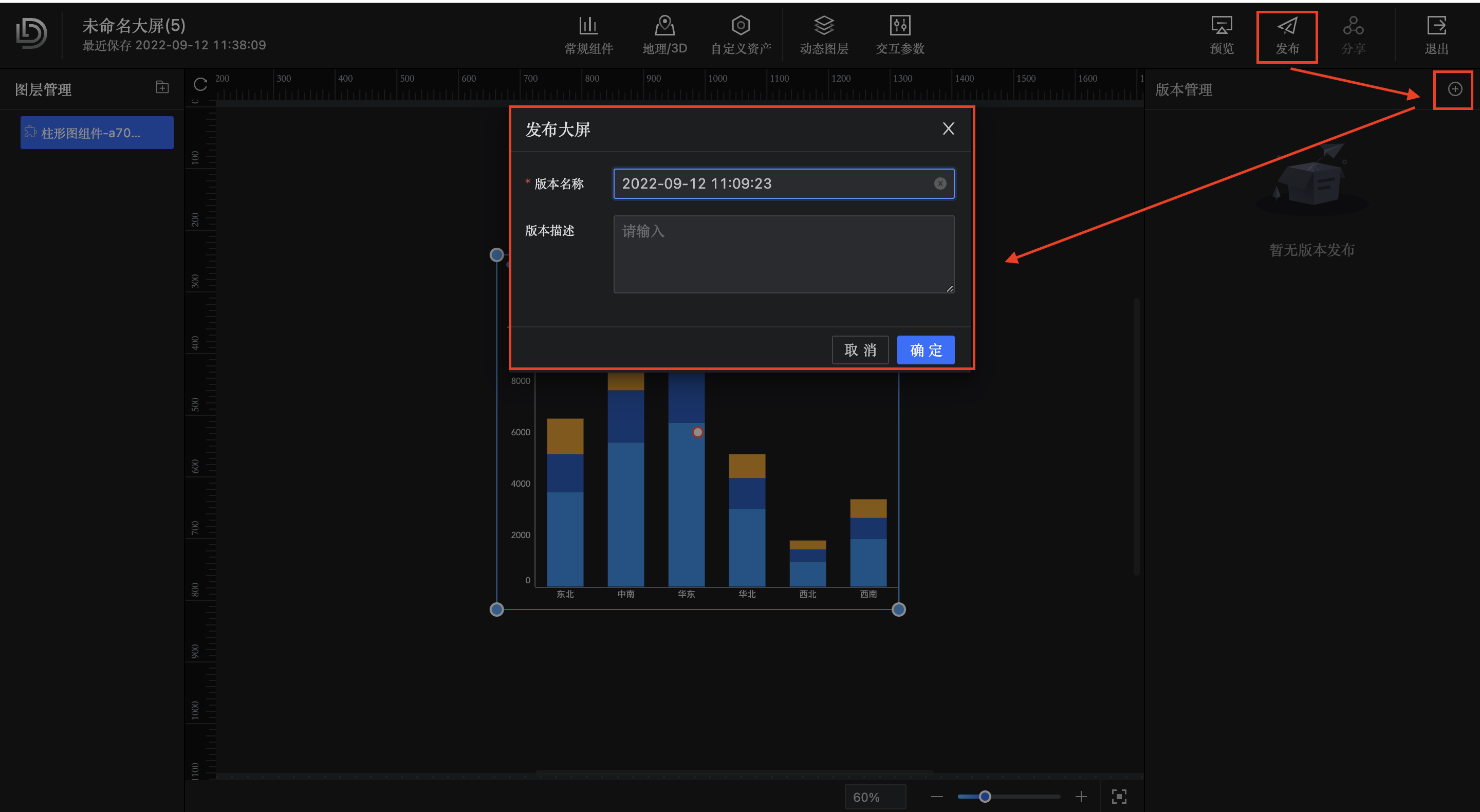 - 12、支持大屏的发布/分享功能,大屏支持发布多版本,支持将指定版本分享给其他协作者