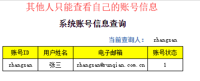 • 根据系统用户ID控制报表展现的数据,当报表查看人员为系统管理员root时展现全部帐号信息,否则只展现本人帐号信息。