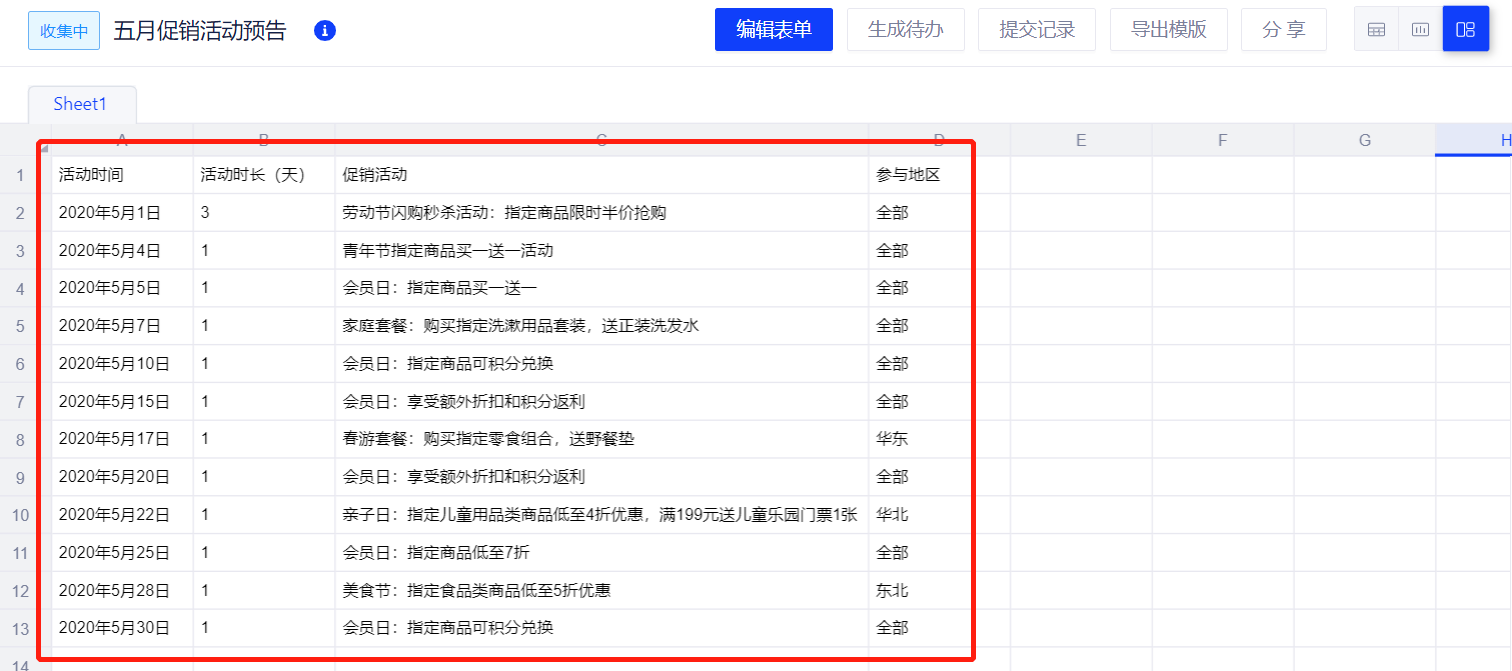 作为表单的创建者,可以对表单提交的数据与权限集中管理,查看与修改全部数据。