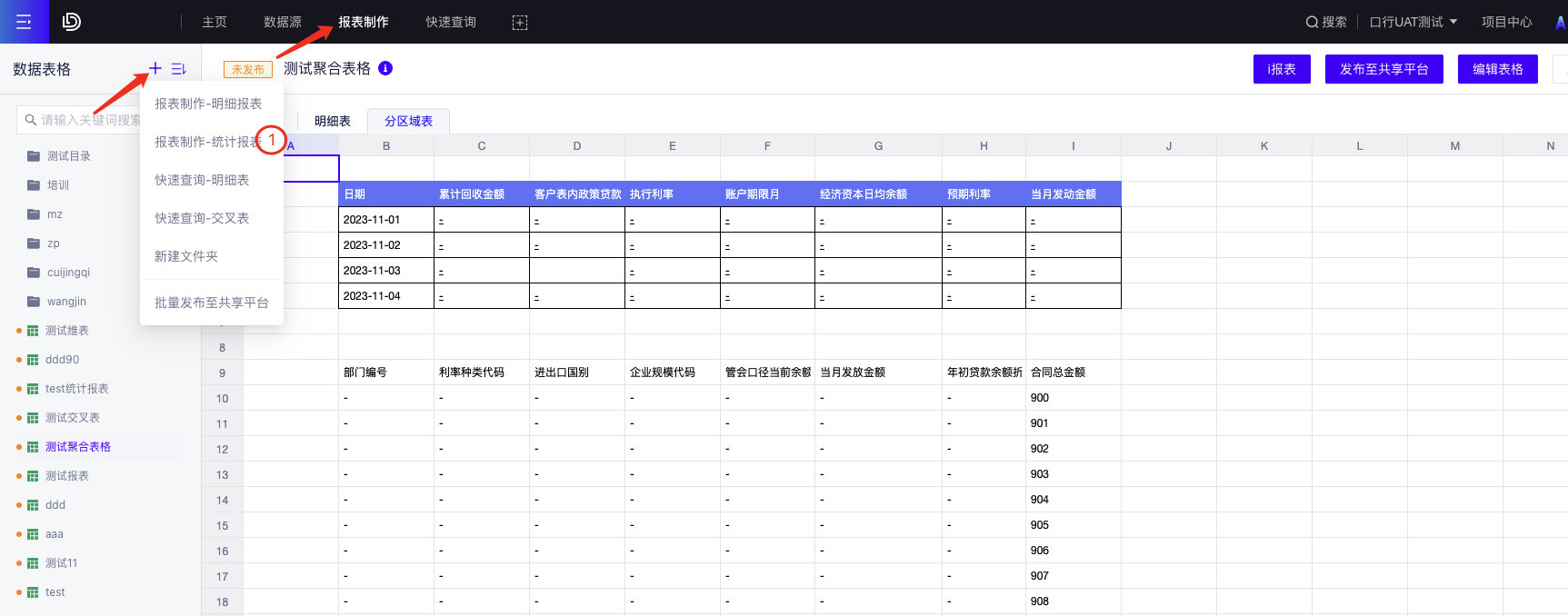(4) 保存之后生成复杂报表,并且进行数据的展示和阅览